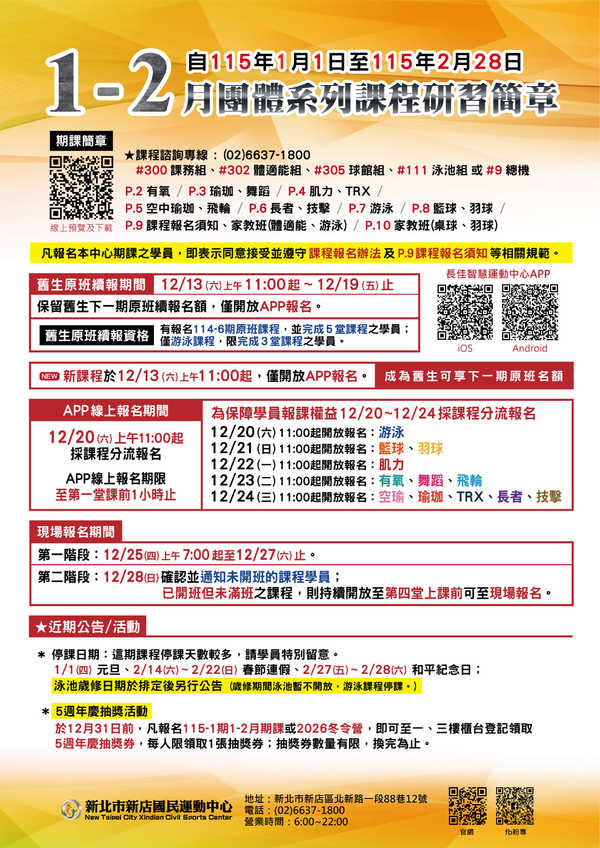 新課程報名期間 12/13(六) 上午11:00起,僅開放APP線上報名 NEW新課程。
