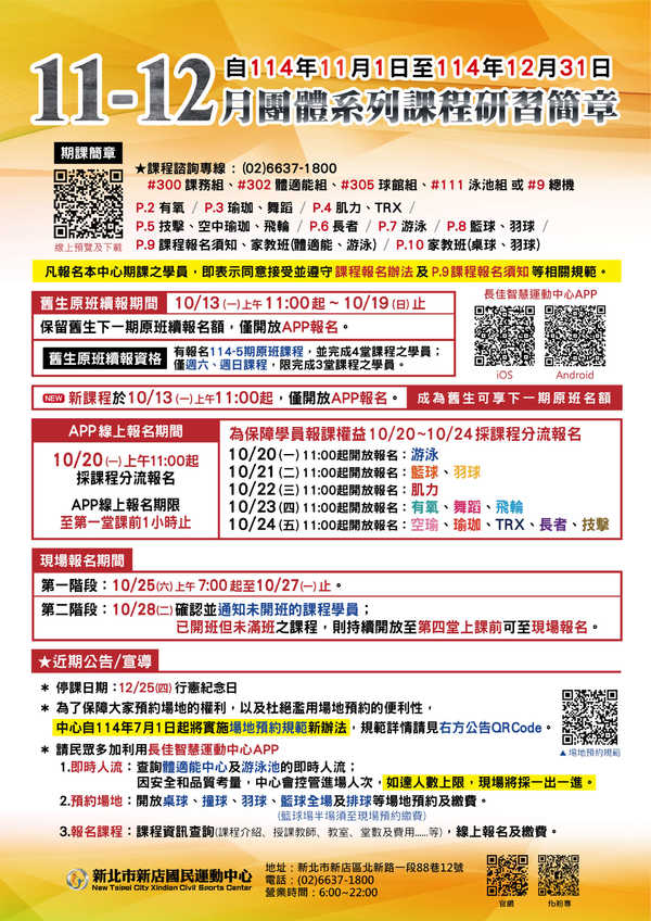 新課程報名期間 10/13(一) 上午11:00起,僅開放APP線上報名 NEW新課程。
