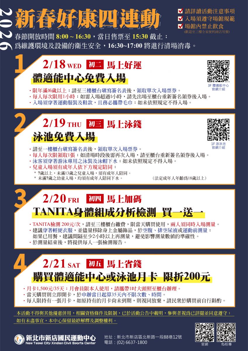 [優惠活動] 2026新春好康四連動:新北市運動中心優惠資訊