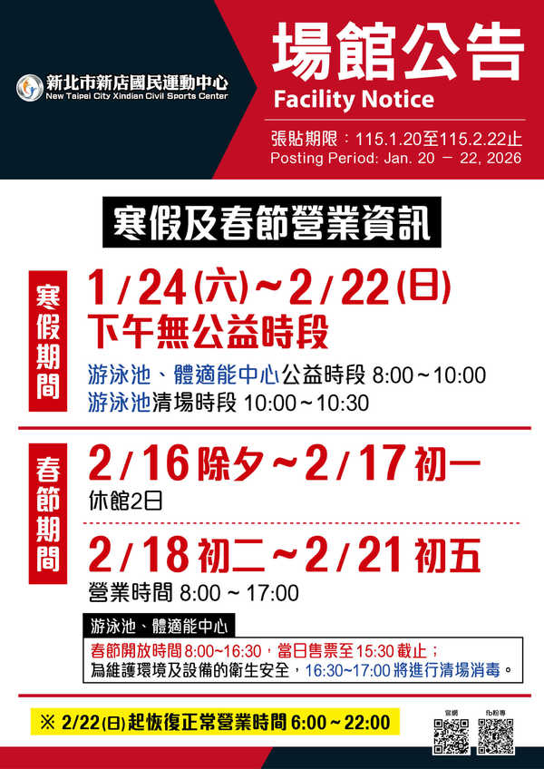 114.12.30(二)至115.1.18(日) 游泳池年度歲修暫不開放使用