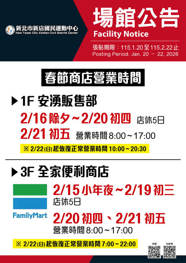 [公告] 國定假日營業資訊:全館正常營業,採假日收費標準辦理。